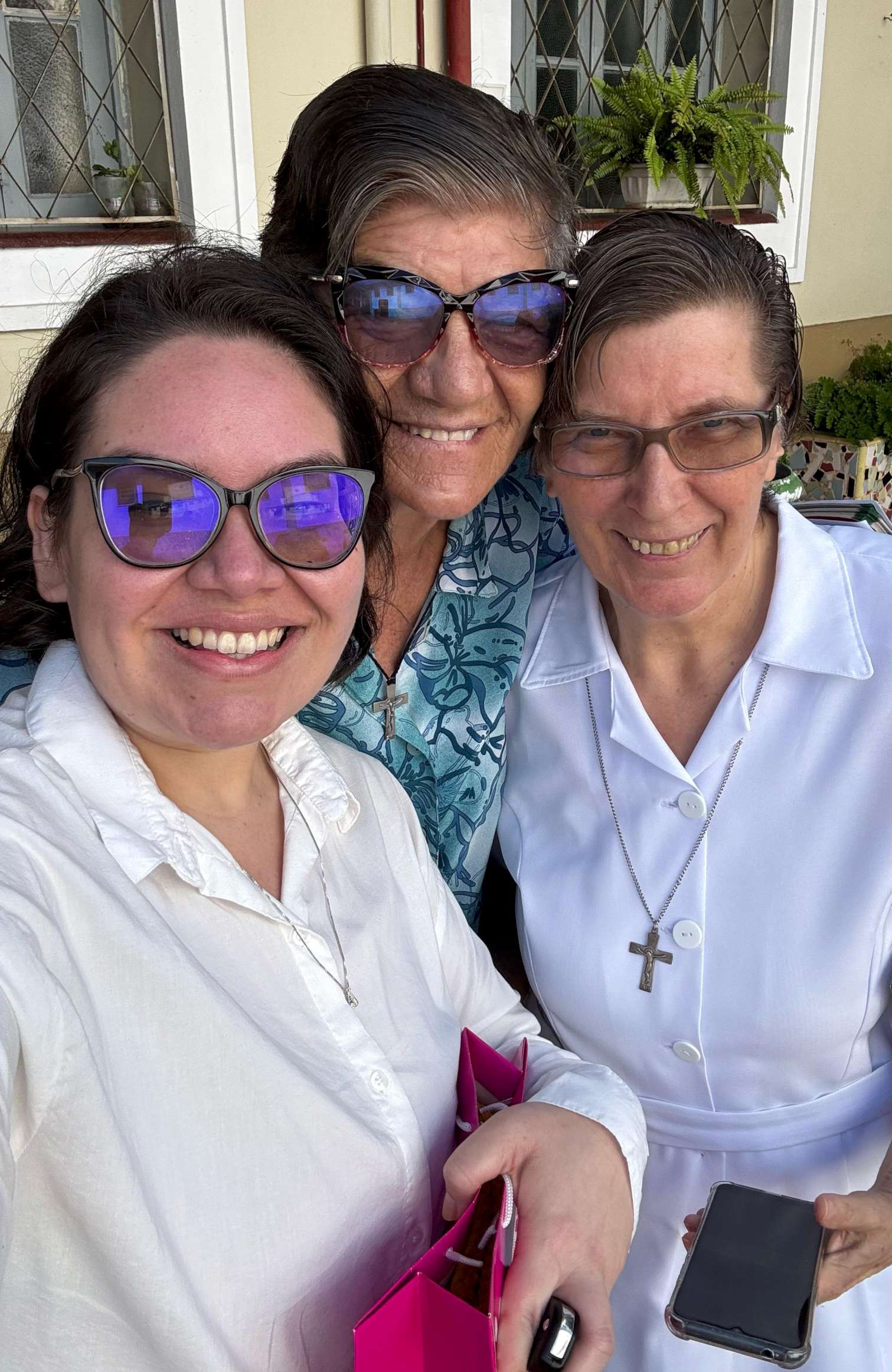 11-Adana_16..02.2025 srecanje po masi z dr. Adano-levo, kjer je zgdodba upanja nastala. V sredini s. Rozy in jaz.