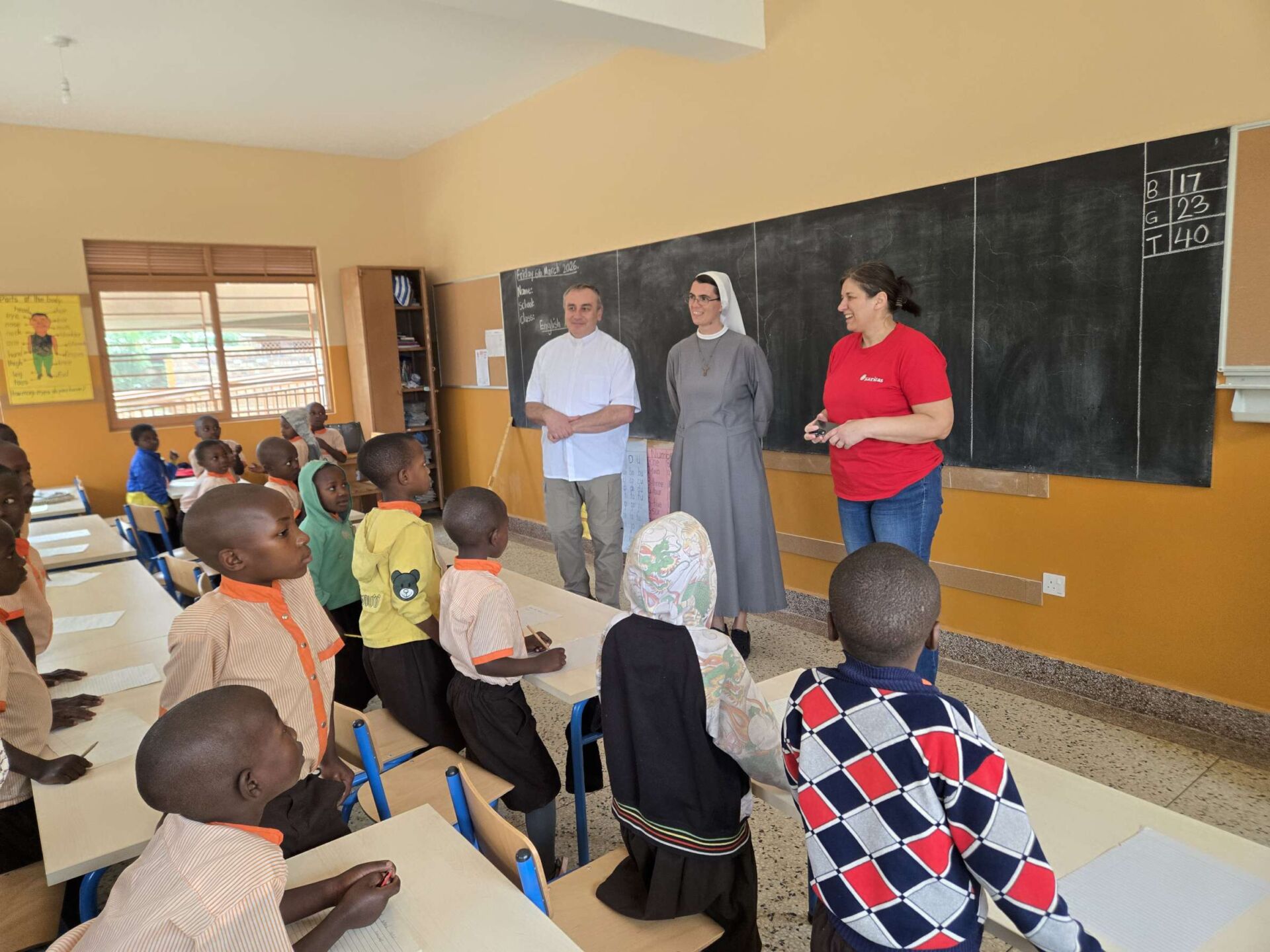 Uganda v primerjavi z Ruando pokaže veliko bolj afriško lice. Glavne ceste so sicer tudi tu precej dobre, pred desetletji jih je gradila še Jugoslavija. A splošni vtis je precej bolj neurejen, tako glede čistoče, navad, pravil, standarda … Naša naslednja postaja je bil kraj v Rwentobo, kjer so pred sedmimi leti na novo odprle misijon šolske sestre sv. Frančiška Kristusa Kralja iz bosansko-hrvaške province, ki se jim je pridružila tudi slovenka s. Urša Marinčič. Iz Slovenije smo jim pomagali graditi hišo za bodoče novinke, pastoralni dom v bližnji podružnici in novo osnovno šolo. Sredstva za to ste dobrotniki darovali v Trikraljevski akciji in ob Pustni sobotni iskrici leta 2024.