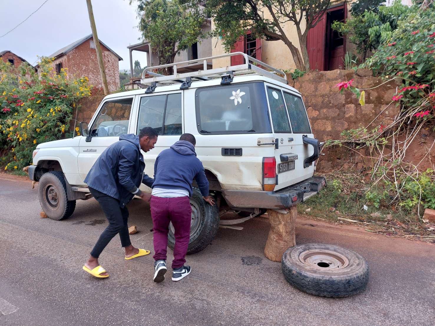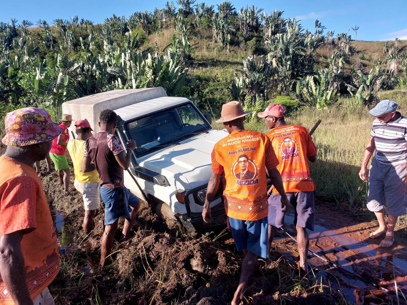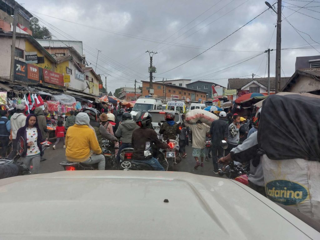 Pot od glavnega mesta Antananarivo na jug otoka nam je vzela za 800 km dva dneva vožnje z vmesno nočitvijo. Vsak premik med slovenskimi misijonarji pa spet pol dneva za 60, 100 ali 200 km. Asfaltna cesta do Vangaindrana je kljub luknjam nekako lepo prevozna. Kakor hitro pa skreneš z glavne ceste ali nadaljuješ naprej po glavni cesti proti jugu, se ceste spremenijo v zemljene kolovoze, ki v primeru dežja postanejo blatne drče. Luknje, jarki in luže so neizogibne. Ko smo na naši poti dvakrat obstali v blatu in imeli dva gumidefekta, smo se dobro zavedali, kako pomembna so v teh krajih trpežna vozila iz akcije MIVA. Žal so vremenske razmere take, da pol leta tam divjajo cikloni z nalivi in vetrom, preko našega poletja pa imajo tam zimo in sušno obdobje. Z mednarodno pomočjo državi trenutno poteka asfaltiranje ceste naprej proti jugu države. Na celotno obnovljeno cesto pa bo gotovo potrebno čakati še kar nekaj let …
