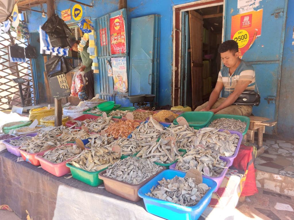Kakor že prejšnje dni smo tudi v Manambondro obiskovali domove družin v stiski, ki so vključene v program Slovenske Karitas Z delom do dostojnega življenja. Življenje ljudi v obmorskem pasu na jugu je z evropskega zornega kota precej surovo. Bivajo v malih lesenih kolibah, pokritih s posušenimi listi madagaskarske palme ravinale. Na nekaj kvadratnih metrih v enem prostoru živi cela družina, večinoma so to mame z otroki. Svoje stvari imajo obešene pod stropom, kuhajo na odprtem ognju v istem prostoru ali pa pred hišo. Življenjska doba take hišice je nekako 20 let. Stranišča največkrat sploh ni. Vodo dobijo v bližnjih skupnih vodnjakih ali iz cistern in jo v kanticah prinesejo do doma. Elektrika iz sončnih celic je običajno na voljo le v misijonu ali pri redkih posameznikih. Glavno živilo na otoku je riž, ki ga pridelajo na riževih poljih, ob suši pa ga morajo tudi dokupiti. Poleg riža jedo preproste mesne ali zelenjavne omake, kdor si to lahko privošči. Kdor ima službo, na primer kot učitelj, zasluži okoli 50 EUR na mesec. V glavnem pa ni prav dosti podjetij in služb. Zato se večina preživlja s poljedelstvom ali mikro trgovanjem z ročnimi izdelki, kot so pletene košare, preproge in drugi izdelki. Nekoliko boljše pogoje imajo na visoki planoti na sredini otoka. Tam je klima nekoliko znosnejša, zato tudi ni malarije in življenjski standard je nekoliko višji. Še vedno pa je Madagaskar kot celota prav na dnu lestvice najrevnejših držav na svetu.