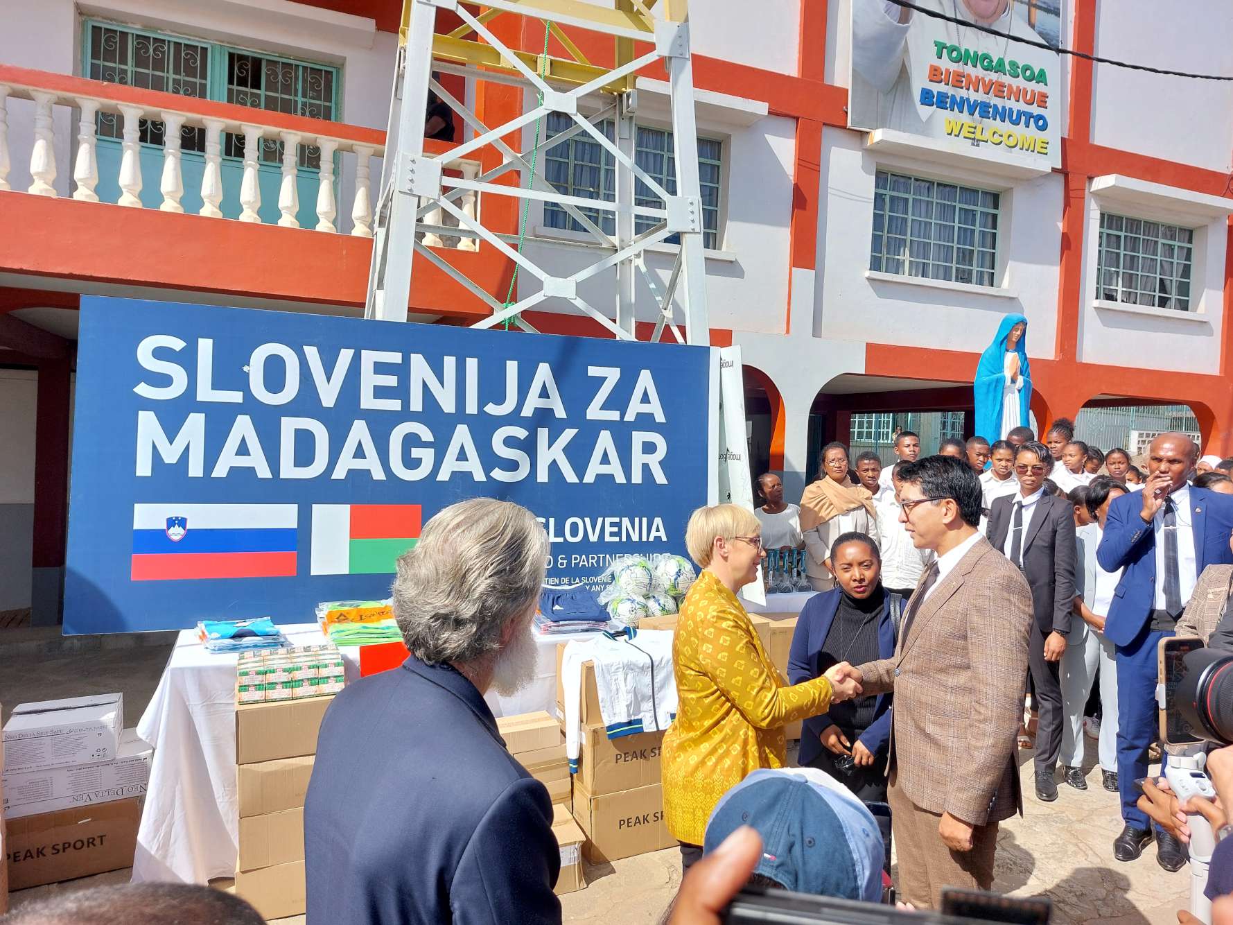 Odprtje nove šole je povzdignila tudi prisotnost slovenske državne delegacije pod vodstvom predsednice Nataše Pirc Musar. S svojim obiskom in gestami je izrazila spoštovanje vse Slovenije delu misijonarja Pedra Opeke. S tem je tudi prva predstavnica slovenskega političnega vrha, ki je z obiskom počastila delo slovenskih misijonarjev na Madagaskarju. Skupaj z njo se je odprtja šole udeležil tudi madagaskarski predsednik Andry Rajoelina, ki je celotno slovensko delegacijo in misijonarje dan poprej gostil v predsedniški palači. Ob odprtju šole so oba predsednika s pozdravi, plesi in pesmimi pozdravili otroci in mladi iz vseh vzgojnih ustanov Akamasoe.